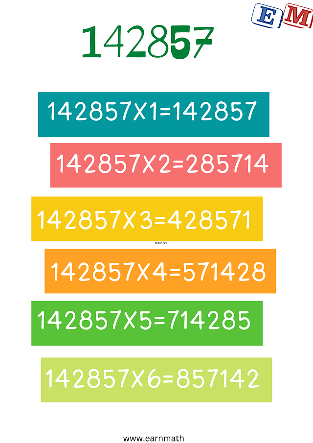 A cyclic number is a number of “n” digits that when multiplied by 1, 2, 3, …, n results in the same digits but in a different order.